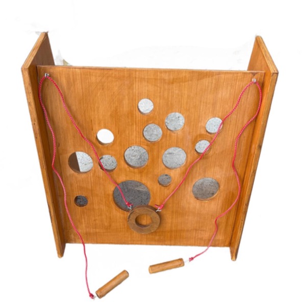 Het spel kan alleen of met twee personen worden gespeeld. Probeer met behulp van de uiteinden van het touw de kaas langs de gaten te loodsen en zo hoog mogelijk te eindigen. Wie is het gelukt om helemaal boven te komen. Een uitdagend spel voor jong en oud